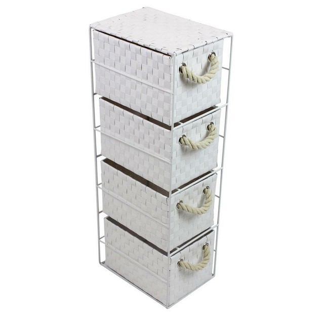 Jvl 4 Drawer White Storage Unit With Rope Handles 18 X 25 X 65 Cm
